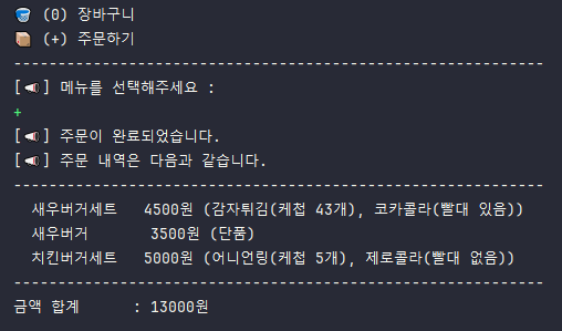 System.out.println("[📣] 주문 내역은 다음과 같습니다. ");
